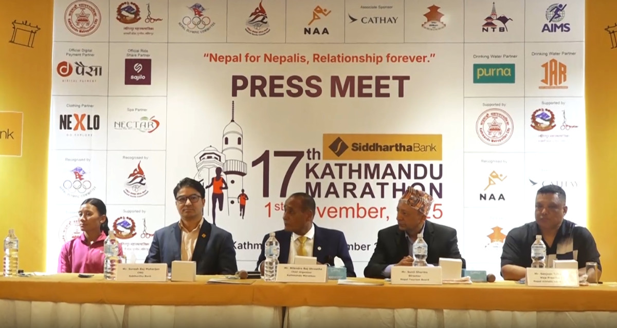 एनआरएस स्पोटर्स फाउण्डेसनले बिहीबार पत्रकार सम्मेलन गर्दै काठमाडौं म्यारानको आगामी संस्करणको कात्तिक १ गते हुने जनाएको हो । नेपालको सबै भन्दा पुरानो काठमाडौं म्याराथन सन् २००७ देखि शुरु भएको थियो । पत्रकार सम्मेलनमा काठमाडौं म्याराथन र मुख्य प्रायोजक सिद्धार्थ बैंकबीच सहकार्यका लागि सम्झौता पनि भएको छ । एनआरएस स्पोटर्स फाउण्डेसनका अध्यक्ष नीलेन्द्रराज श्रेष्ठ र सिद्धार्थ बैंकका मार्केटिङ प्रमुख सुरेशराज महर्जनबीच सम्झौता पत्रमा हस्ताक्षर भएको हो ।